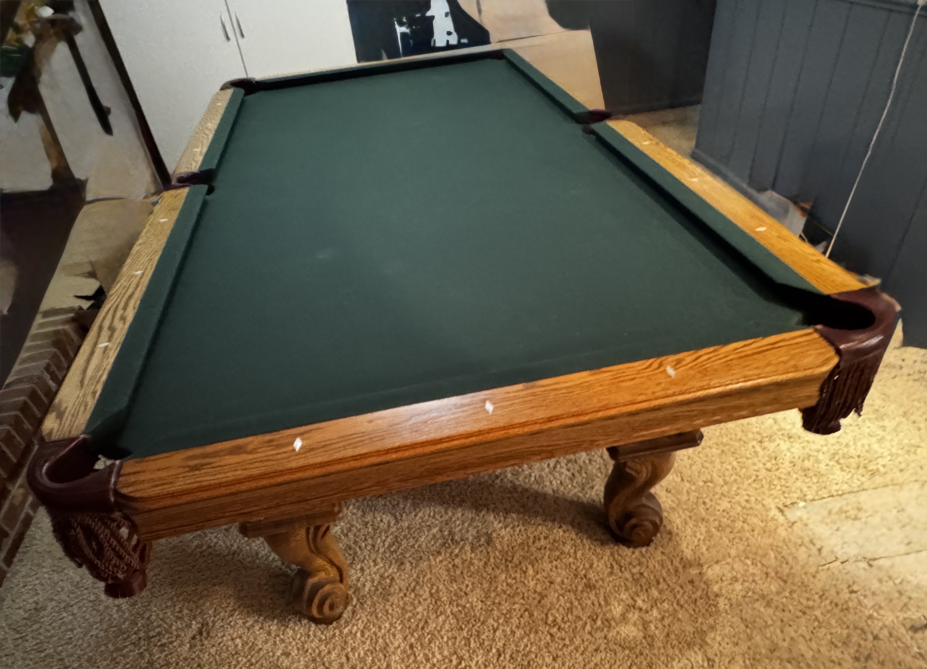 -Cloth shown is 'Dark Green' in good condition. We can easily replace the cloth if a color change or upgrade is desired.